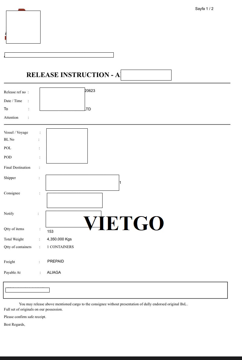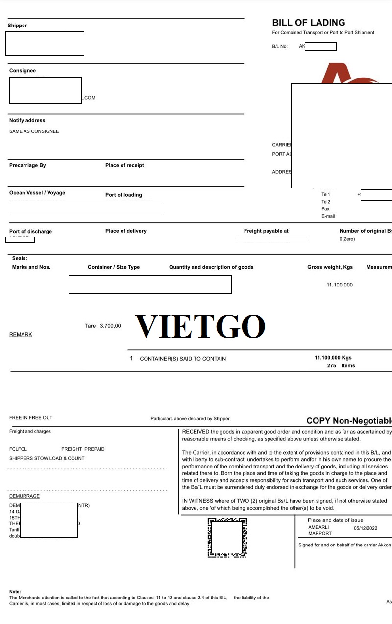 Vị khách hàng chia sẻ rằng công ty ông thường nhập khẩu từ thị trường Thổ Nhĩ Kỳ, Trung Quốc và Ai Cập. Dưới đây là bản vận đơn nhập khẩu từ thị trường Thổ Nhĩ Kỳ của vị khách hàng vào năm 2022: