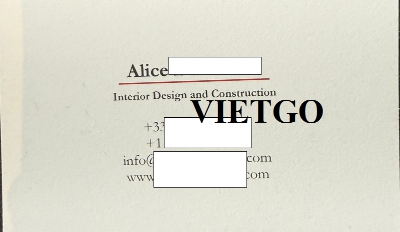 Nhờ cuộc trò chuyện và chia sẻ, VIETGO nhận thấy sự tiềm năng cũng như thiện chí hợp tác của vị khách hàng với các doanh nghiệp. Quý Nhà cung cấp nào có thể đáp ứng được cho đơn hàng của cô Alice, vui lòng liên hệ qua địa chỉ thông tin liên hệ được cung cấp dưới đây.