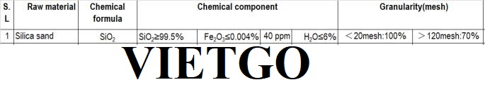 Ông Miazi – đại diện đến từ công ty ██████████ vừa qua đã liên hệ với VIETGO trao đổi về mong muốn tìm kiếm nhà cung cấp cho đơn hàng nhập khẩu cát silica sang thị trường Bangladesh để phục vụ cho hoạt động kinh doanh của công ty ông.