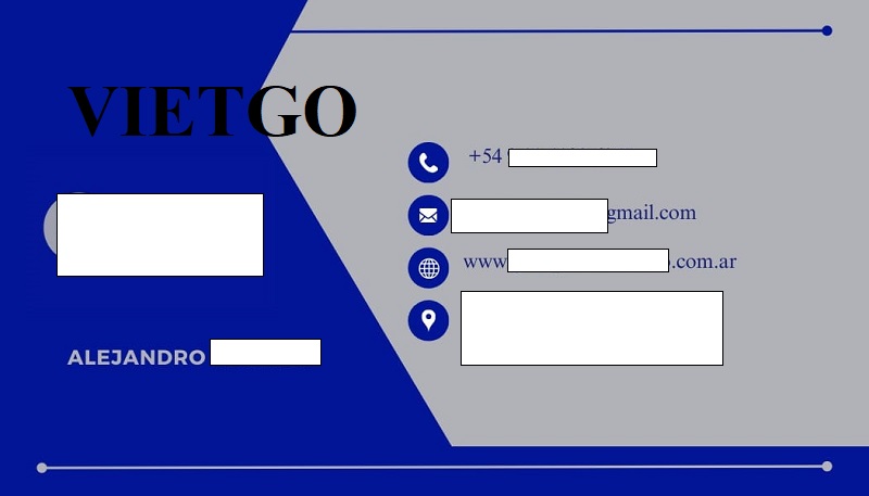 Vậy, Quý nhà cung cấp nào có thể đáp ứng được yêu cầu của ông Alejandro, vui lòng liên hệ và báo giá với ông qua địa chỉ thông tin liên lạc dưới đây: