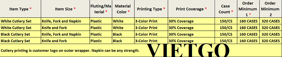 VIETGO xin gửi tới Quý nhà cung cấp thông tin về đơn hàng thìa dĩa nhựa đến từ vị khách hàng tiềm năng, cô Cathy.