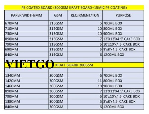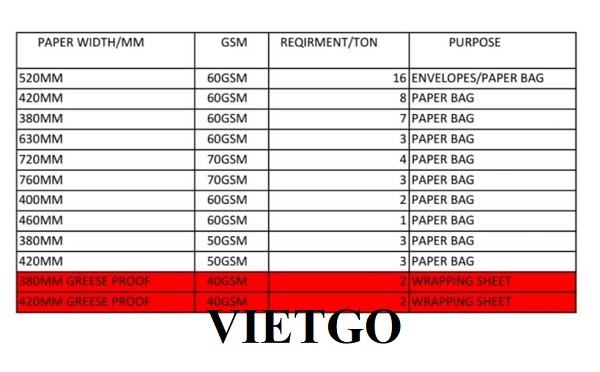 VIETGO xin gửi tới Quý nhà cung cấp thông tin chi tiết cũng như đề xuất cụ thể về đơn hàng cuộn giấy Kraft của ông Pabasara.