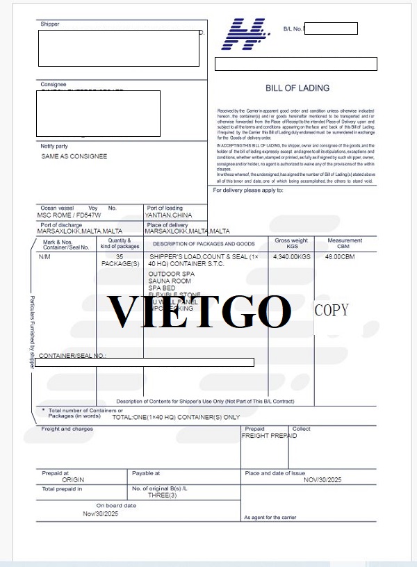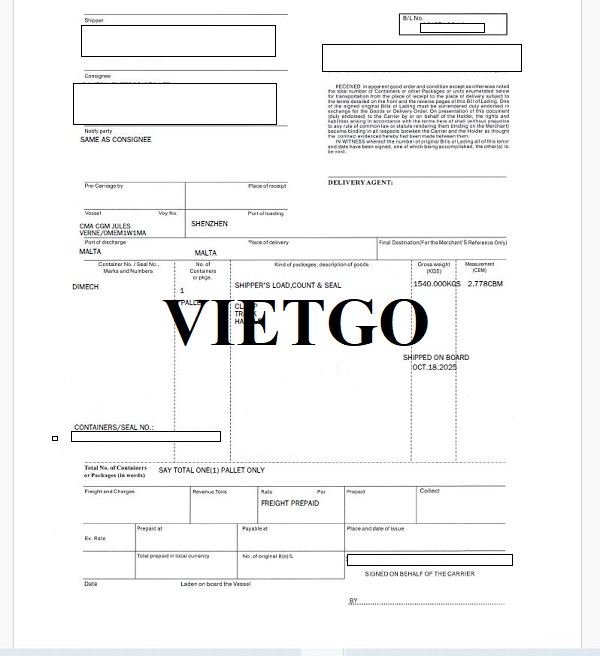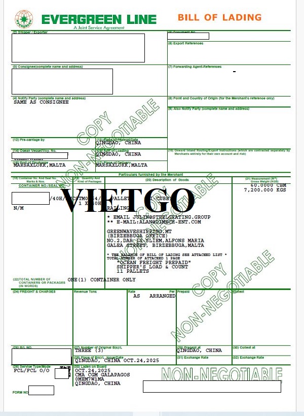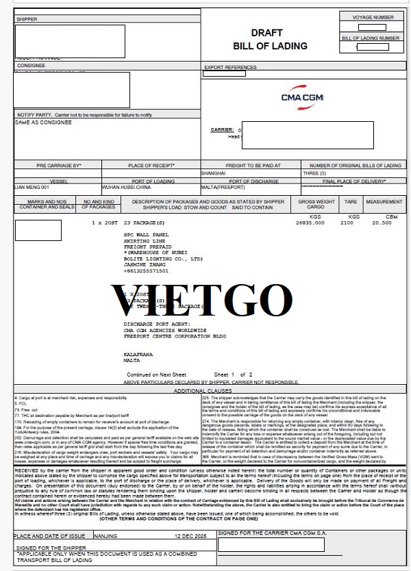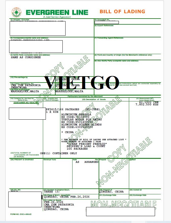 Hình ảnh các bản vận đơn nhập khẩu ván sàn, giường, tay nắm cửa, thỏi nhôm công ty đã nhập khẩu từ Trung Quốc