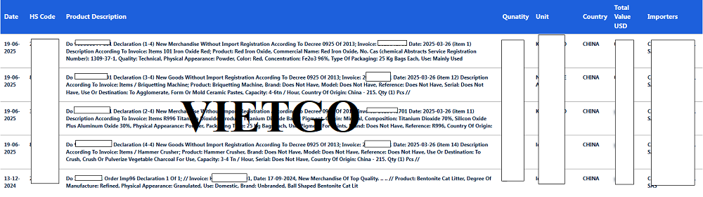 Hình ảnh thông tin một số chuyến nhập khẩu hàng hóa từ Trung Quốc trong thời gian gần đây