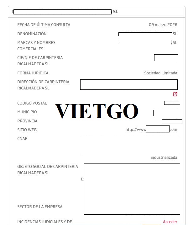 Địa chỉ công ty: ██████████, Tây Ban Nha