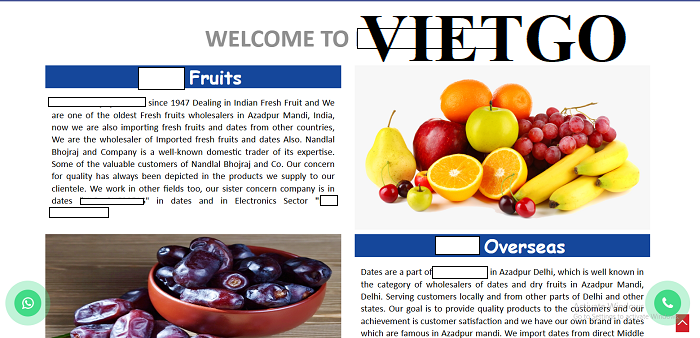 Công ty ██████████ là một doanh nghiệp có trụ sở tại Delhi, Ấn Độ, hoạt động trong lĩnh vực thương mại và phân phối nhiều loại sản phẩm tiêu dùng và nguyên liệu. Doanh nghiệp này có nguồn gốc từ công ty ██████████ được thành lập từ năm 1947 và là một trong những nhà buôn trái cây tươi lâu năm tại chợ đầu mối Azadpur – một trong những chợ nông sản lớn tại Ấn Độ. Qua nhiều năm hoạt động, doanh nghiệp đã xây dựng được mạng lưới khách hàng rộng và kinh nghiệm trong lĩnh vực nhập khẩu và phân phối hàng hóa.