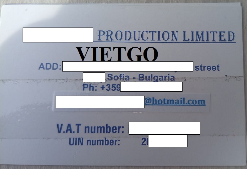 Địa chỉ công ty: ██████████ Sofia, Bulgaria