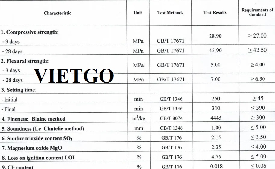 Yêu cầu: Xi măng Portland 42.5 có chất lượng tốt, không bị ẩm mốc hay vón cục