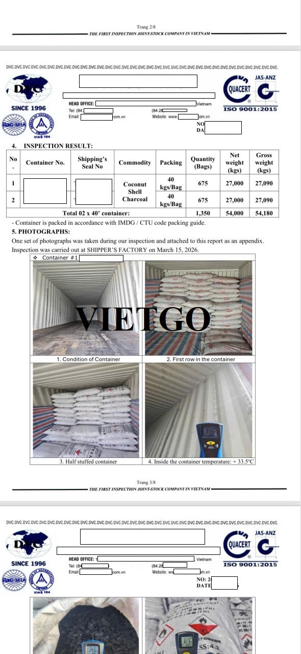 Chứng thư Giám định nhập khẩu than dừa từ Việt Nam vào tháng 3/2026