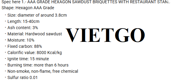 Ngoài việc tự sản xuất, chúng tôi cũng hợp tác với nhiều nhà xưởng khác tại Indonesia và châu Á nhằm đảm bảo nguồn cung ổn định và chất lượng cho khách hàng. Với đơn hàng lần này, chúng tôi cần tìm kiếm nhà cung cấp uy tín cho sản phẩm than mùn cưa dùng để nướng BBQ tại các nhà hàng của Oman theo các thông số chi tiết tôi đã cung cấp ở trên”, vị khách hàng chia sẻ.