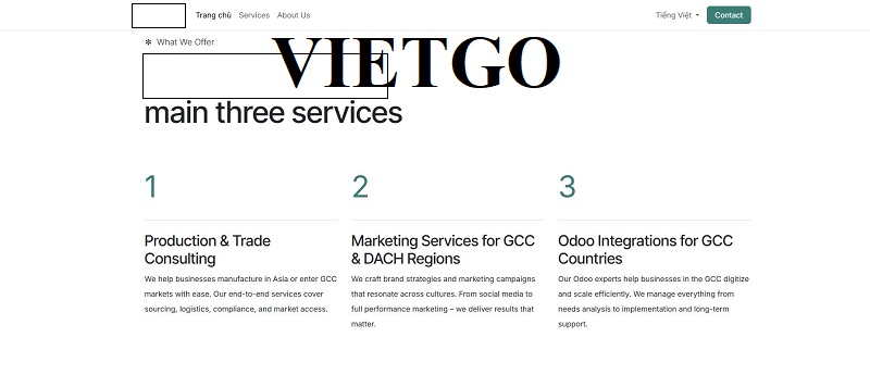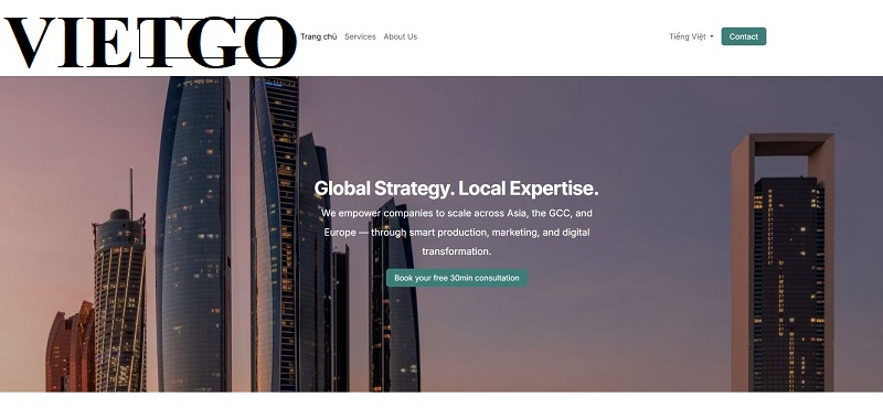 ████████████████████Group là một công ty tư vấn và cung cấp giải pháp kinh doanh quốc tế, tập trung hỗ trợ các doanh nghiệp mở rộng hoạt động sang các thị trường trọng điểm như châu Á, khu vực GCC (Hội đồng Hợp tác Vùng Vịnh) và châu Âu. Với định hướng “empower companies to scale”, Tập đoàn giúp khách hàng tăng trưởng bền vững thông qua việc kết hợp giữa sản xuất, marketing và chuyển đổi số.