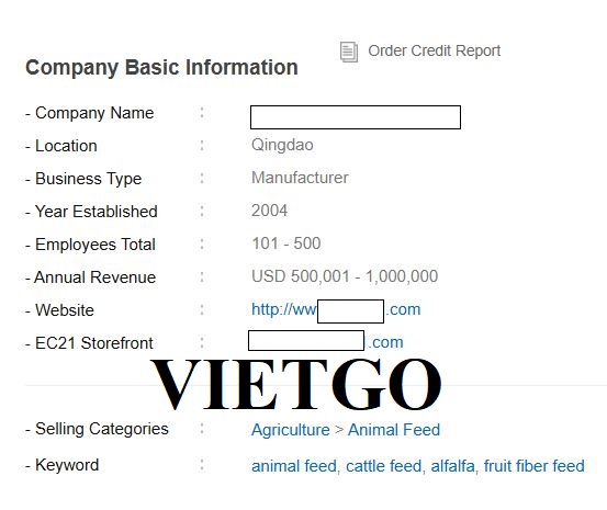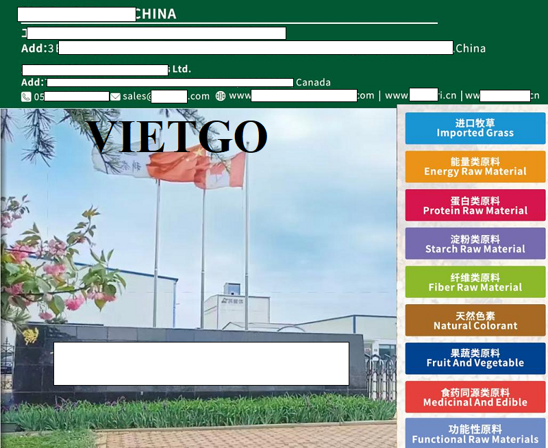 ██████████. là doanh nghiệp có trụ sở tại Trung Quốc, chuyên hoạt động trong lĩnh vực sản xuất và thương mại quốc tế các nguyên liệu nông nghiệp và thức ăn chăn nuôi. Với nhiều năm kinh nghiệm trong ngành, công ty đã xây dựng được mô hình kinh doanh khép kín, bao gồm thu mua, chế biến và phân phối toàn cầu. Hoạt động của công ty được hỗ trợ bởi hệ thống nhà máy và chuỗi cung ứng ổn định, giúp đảm bảo chất lượng sản phẩm cũng như nguồn cung liên tục cho khách hàng trên toàn thế giới.
