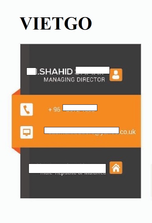 Trao đổi về lần nhập khẩu này, vị khách hàng cho biết ông dự kiến sẽ triển khai một đơn hàng nhập thử nhằm đánh giá chất lượng thực tế cũng như mức độ phù hợp của sản phẩm. Sau khi hoàn tất đơn hàng đầu tiên, ông Shahid cân nhắc nhập khẩu thường xuyên, hướng đến xây dựng nguồn cung ổn định và hợp tác lâu dài với nhà cung cấp phù hợp. Vậy, Quý nhà cung cấp nào có thể đáp ứng được yêu cầu của vị khách hàng, vui lòng liên hệ và báo giá với ông qua địa chỉ thông tin liên lạc dưới đây: