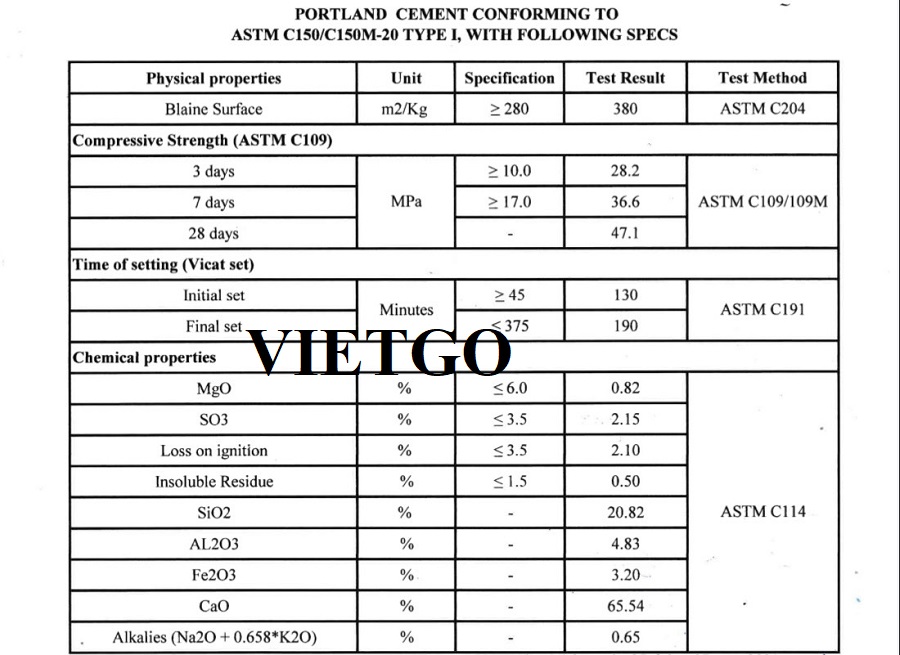 Xi măng ASTM C-150 (Loại có cường độ chịu nén tốt)