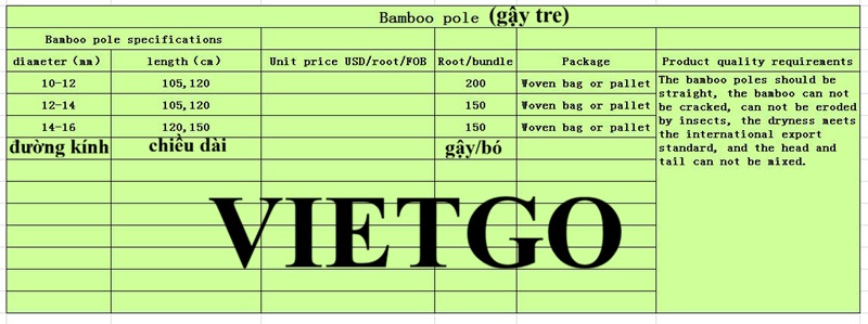 Gậy tre mới, thẳng, có độ bền cao, không mối, mọt, độ khô của gậy đáp ứng tiêu chuẩn quốc tế về xuất khẩu, tất cả gậy tre được để cùng chiều