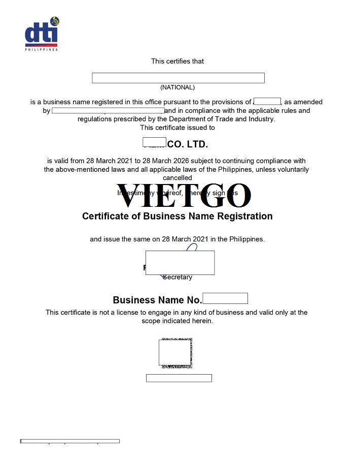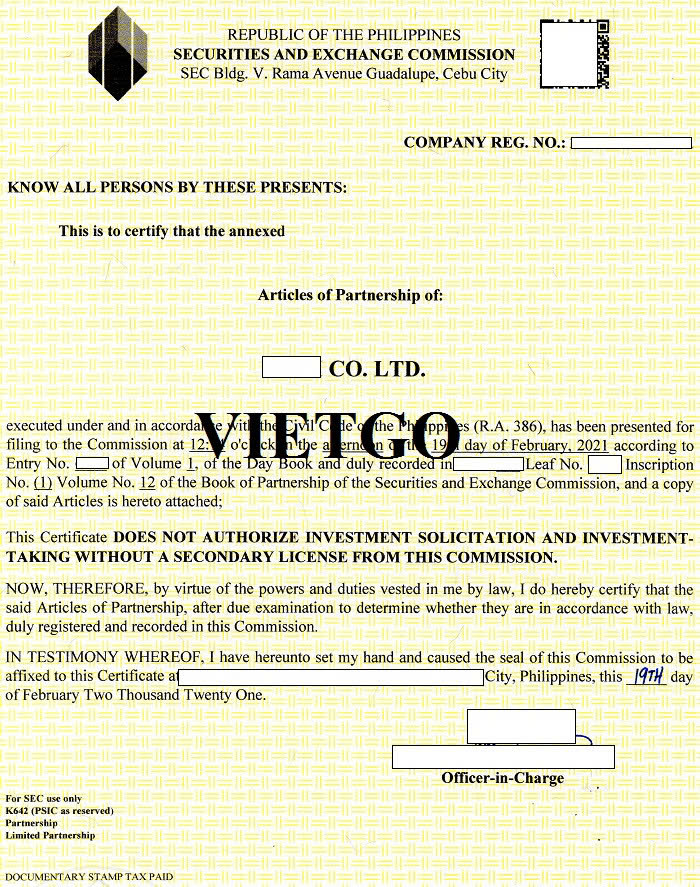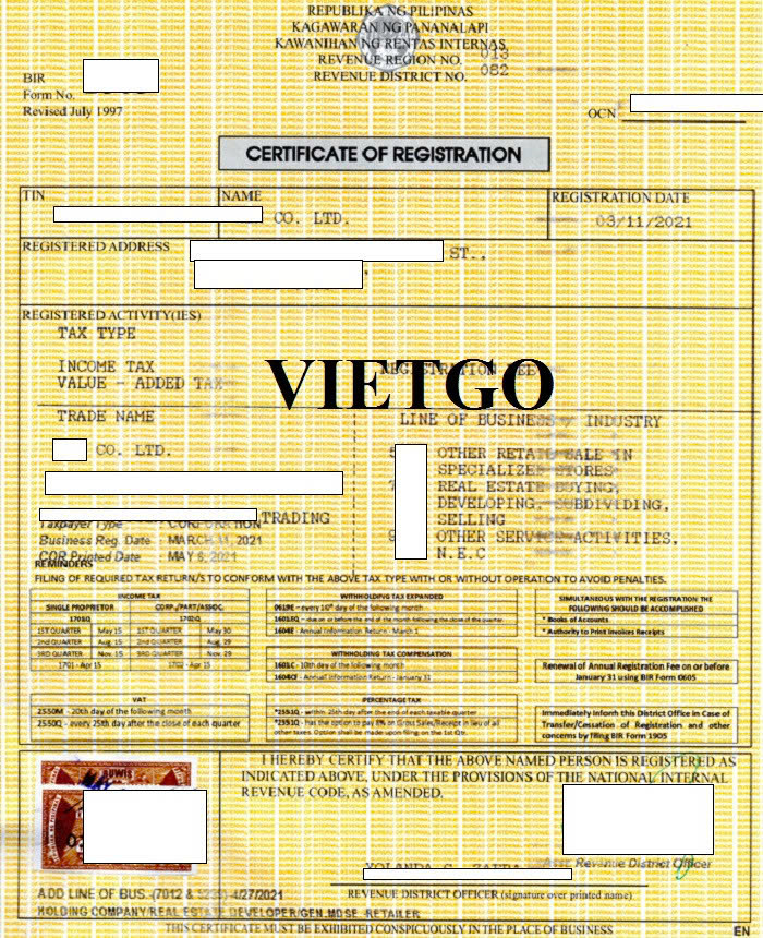 Hình ảnh giấy chứng nhận đăng ký kinh doanh công ty con của vị khách hàng