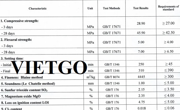 Yêu cầu: Xi măng có chất lượng tốt, đáp ứng tiêu chuẩn xuất khẩu