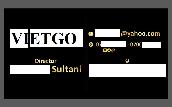 Ông ██████████ Sultani - vị khách hàng của VIETGO lần này đại diện mua hàng đến từ Afghanistan. Hiện tại ông đang là Giám đốc của công ty ██████████, có trụ sở tại Afghanistan. Đây là doanh nghiệp hoạt động trong lĩnh vực thương mại và phân phối hàng hóa tiêu dùng. Với nhiều năm kinh nghiệm, công ty đã xây dựng được mạng lưới kinh doanh ổn định tại thị trường nội địa, đặc biệt trong lĩnh vực thực phẩm và hàng nhập khẩu. Với định hướng phát triển lâu dài, ông luôn tìm kiếm các sản phẩm chất lượng cao từ quốc tế để đáp ứng nhu cầu của khách hàng tại đây.