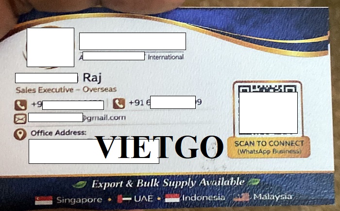 Ông ██████████ Raj - vị khách hàng của VIETGO lần này đại diện mua hàng đến từ Ấn Độ. Hiện tại, ông đang là Giám đốc kinh doanh của công ty ██████████, có trụ sở tại Ấn Độ. Đây là doanh nghiệp hoạt động trong lĩnh vực gia vị và nông sản xuất nhập khẩu. Với đội ngũ kinh doanh giàu kinh nghiệm, công ty đã xây dựng được mạng lưới đối tác tại nhiều quốc gia như Singapore, UAE, Indonesia, Malaysia. Ông Raj chuyên cung cấp các loại gia vị chất lượng cao phục vụ cho cả thị trường nội địa và quốc tế. Ông đang tìm kiếm các nhà cung cấp hạt tiêu đen để đảm bảo chuỗi cung ứng.