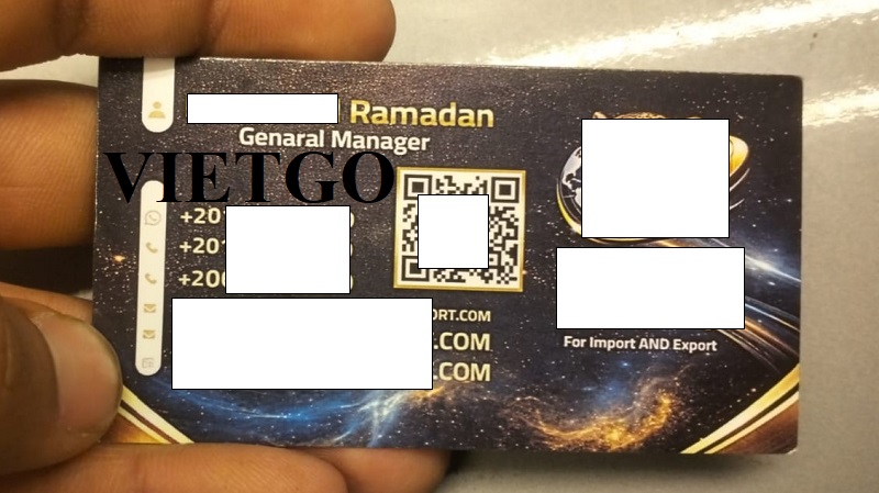 Ông ██████████ Ramadan - vị khách hàng của VIETGO lần này đại diện mua hàng đến từ Ai Cập. Hiện tại, ông đang là Giám đốc của công ty ████████████████████ có trụ sở ở Ai Cập. Đây là công ty chuyên về cung cấp các giải pháp thương mại quốc tế tích hợp hàng đầu và có mạng lưới kinh doanh tại khu vực Trung Đông. Với kinh nghiệm trong hoạt động thương mại quốc tế, công ty luôn chú trọng đến chất lượng sản phẩm và sự chuyên nghiệp trong giao dịch. Ông đang có nhu cầu nhập khẩu gạo PR11 Golden Sella nhằm phục vụ nhu cầu tiêu thụ tại thị trường nội địa.