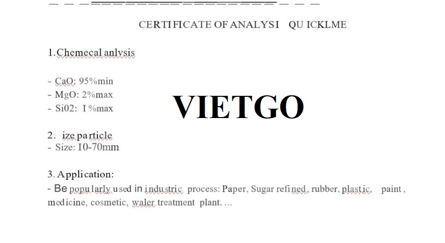 Vừa qua, VIETGO đã nhận được liên hệ từ ông Maruf – Giám đốc công ty ██████████ trao đổi về mong muốn tìm kiếm nhà cung cấp cho đơn hàng nhập khẩu vôi sống sang thị trường Bangladesh.