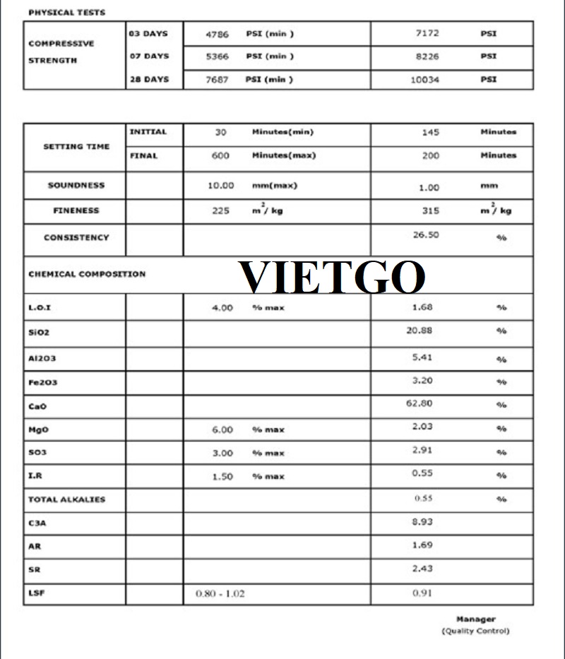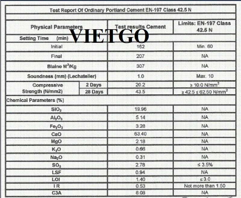 Hình ảnh thông số kỹ thuật xi măng mác 42.5N tham khảo