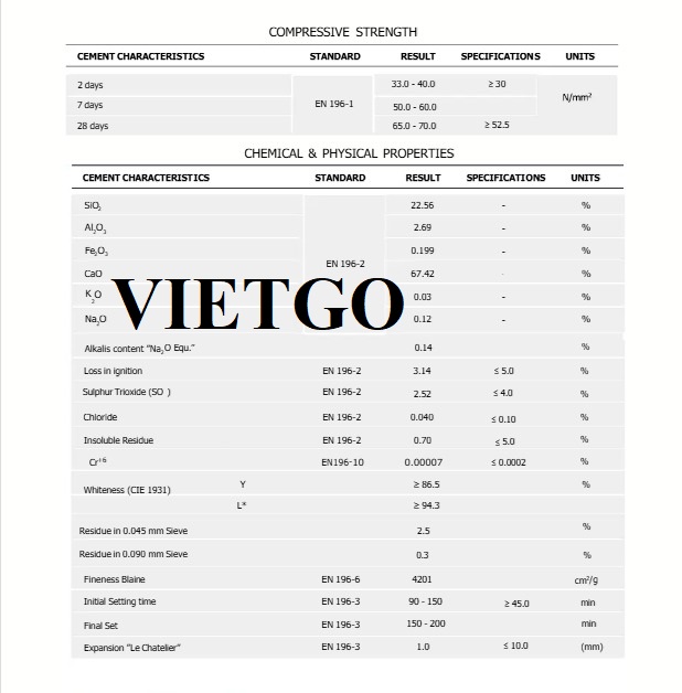 Loại: xi măng Portland mác 52.5R (Loại có cường độ chịu nén tốt)
