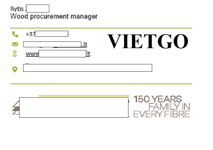 Vừa qua, VIETGO đã có cuộc trò chuyện và trao đổi chi tiết với ông Rytis về sản phẩm gỗ thông tròn. Ông Rytis – làm việc cho công ty ████████████████████đang tìm kiếm các nhà cung cấp tiềm năng cho sản phẩm gỗ này.