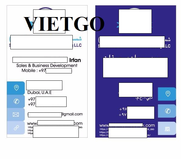 Bên cạnh đó, ông Irfan cũng đã mở rộng việc kinh doanh của mình bằng cách thành lập và điều hành công ty ██████████ tại Dhabi, UAE. Đây cũng là một công ty chuyên cung cấp các sản phẩm cá đông lạnh, cá phi lê, mực và cua cùng với các sản phẩm chế biến từ các loại cá như cá basa, cá tra, cá mòi, cá mú.