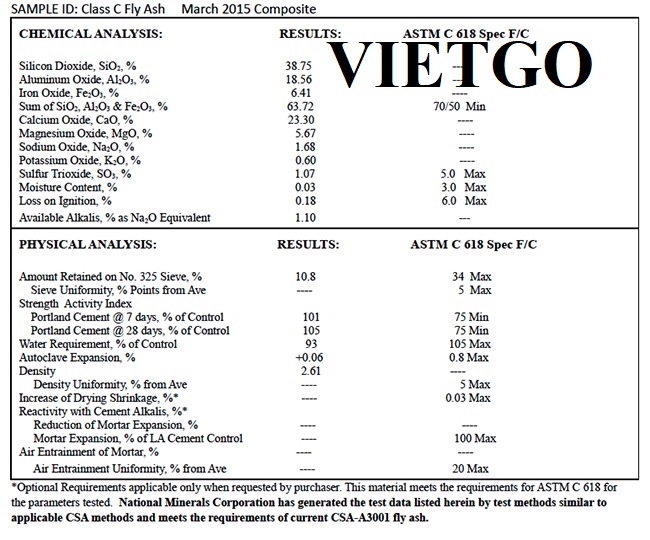 Yêu cầu: Tro bay loại C và loại F có chất lượng tốt, không bị ẩm mốc hay vón cục