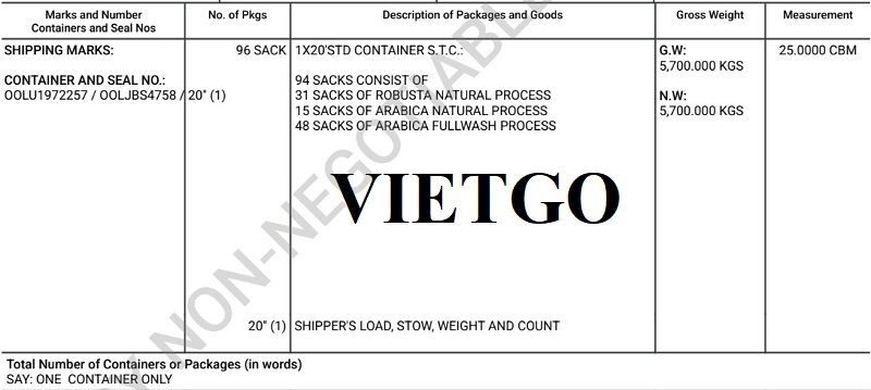 Hình ảnh vận đơn nhập khẩu cà phê từ Indonesia của công ty vị khách hàng