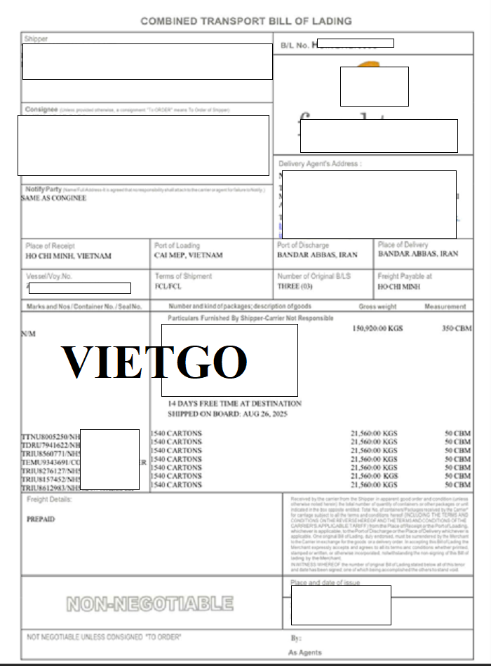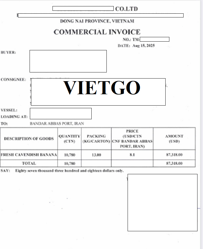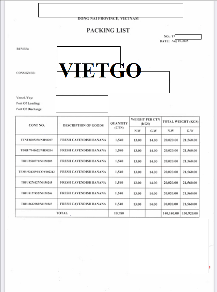 Hình ảnh bản vận đơn nhập đơn nhập khẩu chuối vào tháng 8/2025