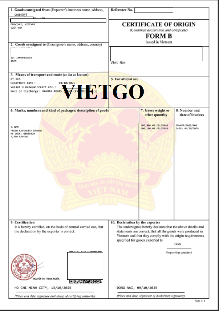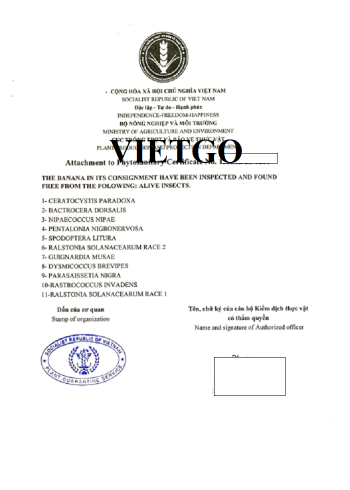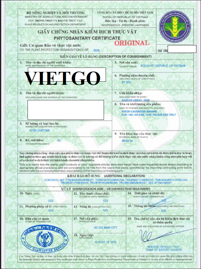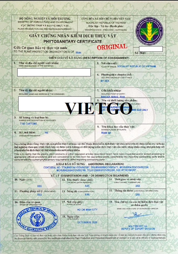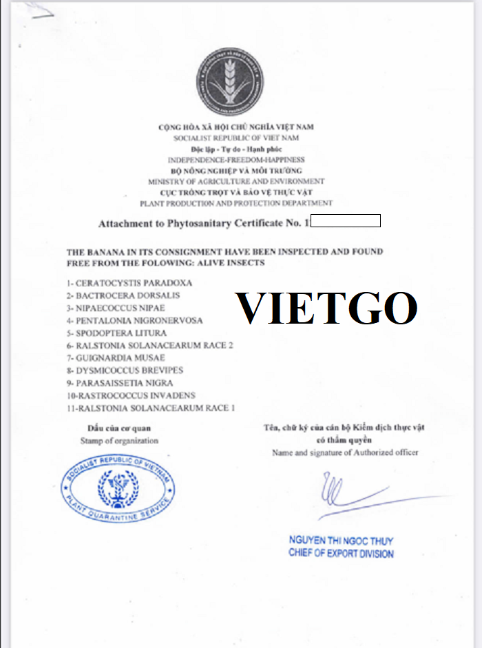 Hình ảnh một số giấy tờ nhập khẩu chuối vào tháng 10/2025