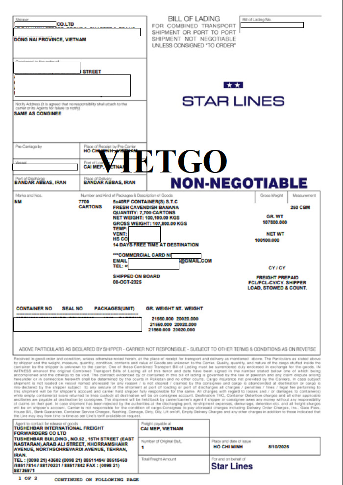 Dưới đây là hình ảnh một số giấy tờ và bản vận đơn nhập khẩu chuối từ Việt Nam của vị khách hàng trong năm 2023 và 2025:
