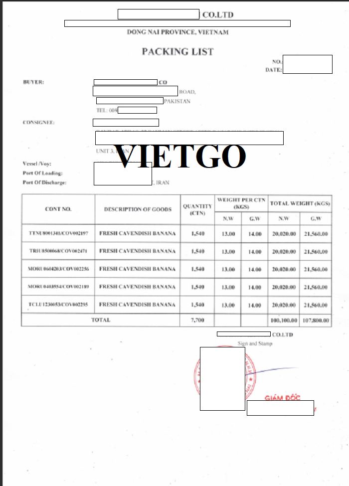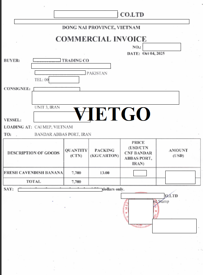 Đơn hàng xuất khẩu chuối sang Pakistan
