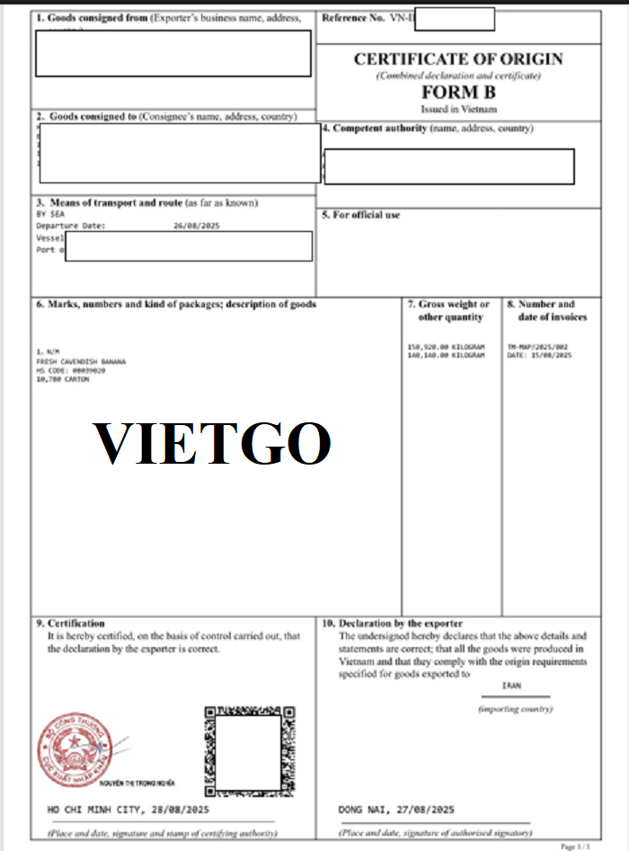 Hình ảnh một số giấy tờ nhập khẩu chuối vào tháng 8/2025