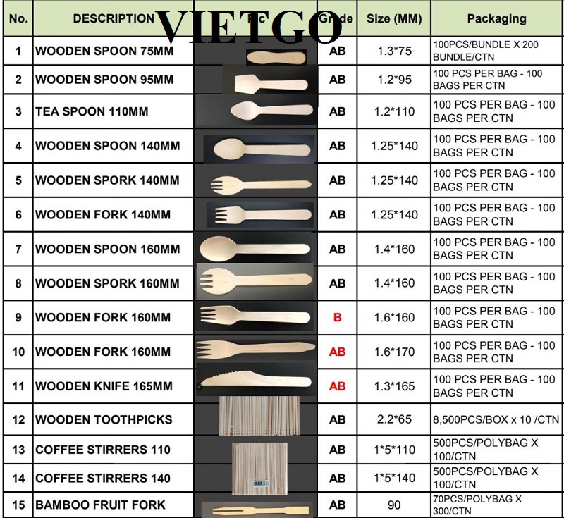 VIETGO xin gửi tới Quý nhà cung cấp thông tin chi tiết cũng như đề xuất cụ thể về đơn hàng thìa gỗ dùng một lần của ông Pabasara.