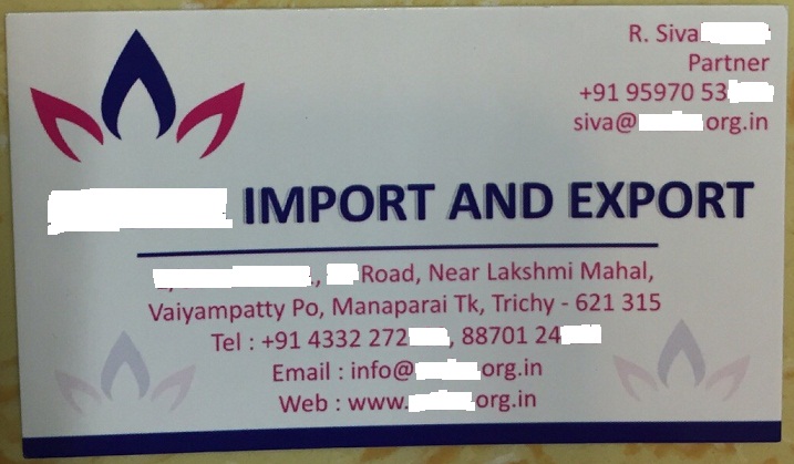Tôi là Siva..., đại diện Công ty ... Import and Export có trụ sở tại thành phố Trichy, bang Tamil Nadu, Ấn Độ.