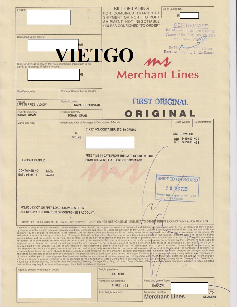 Phương thức báo giá: CIF