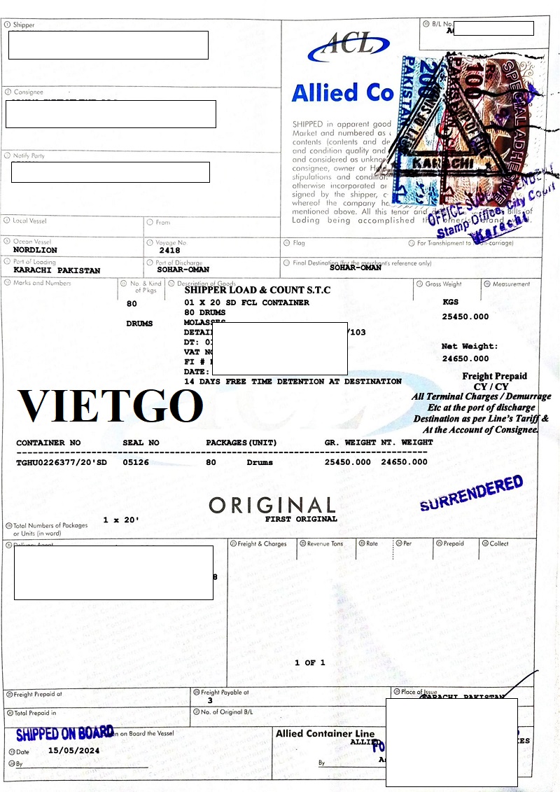 Số lượng: 1 container 40ft