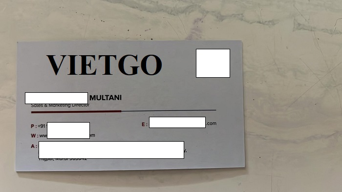 Ông Multani hiện đang là Giám đốc kinh doanh của công ty chuyên cung cấp đá marble, granite, onix, travertine và các sản phẩm gốm sứ có tên là ██████████ với trụ sở được đặt tại Ấn Độ. Vừa qua vị khách hàng đã liên hệ trực tiếp với VIETGO và bày tỏ hi vọng có cơ hội được hợp tác với các nhà cung cấp tiềm năng tại đây cho đơn hàng nhập khẩu đá marble của mình.