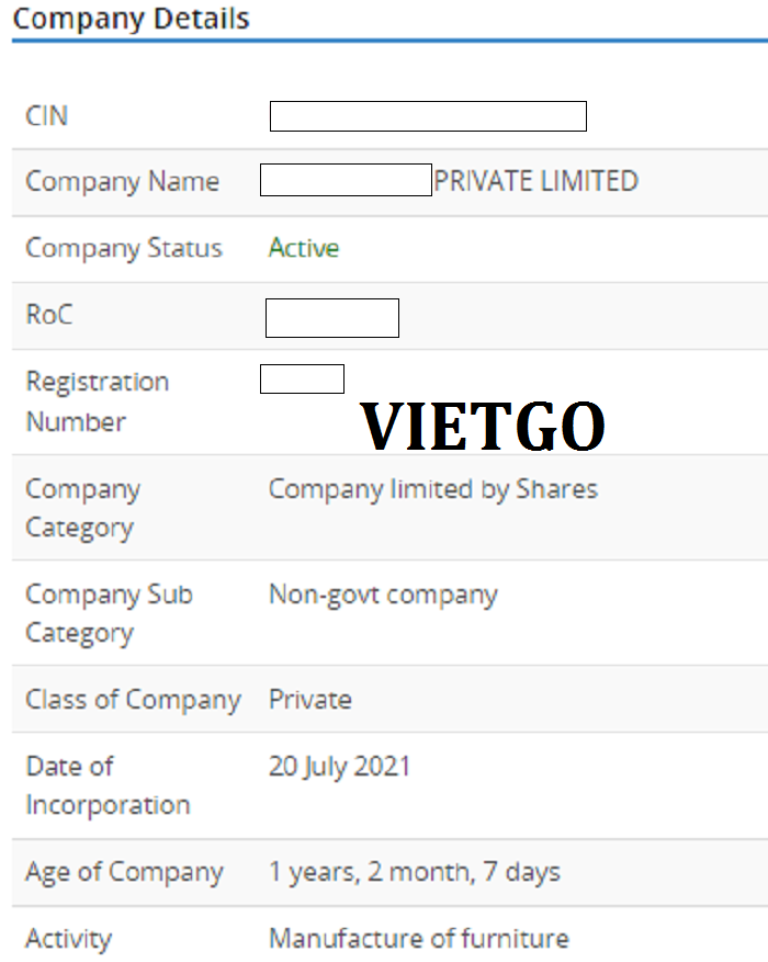 ██████████ Private Limited bao gồm một đội ngũ các chuyên gia, thạc sĩ và kỹ sư trong ngành nội thất và làm việc với các thợ thủ công có tay nghề cao và giàu kinh nghiệm chuyên sản xuất đồ nội thất chất lượng cao bằng cách sử dụng máy móc và công cụ tốt nhất hiện có. Với cơ sở sản xuất nội bộ chuyên dụng có diện tích 35.000 mét vuông tại Khu công nghiệp Reengus, gần Jaipur, Rajasthan và hệ thống máy móc & công cụ tiên tiến, chúng tôi có toàn quyền kiểm soát toàn bộ quy trình sản xuất để sản xuất đồ nội thất chất lượng cao với giá cạnh tranh nhất. Các đơn vị đối tác trong chuỗi cung ứng tích hợp của chúng tôi có tổng diện tích sản xuất hơn 100.000 feet vuông. Điều này giúp chúng tôi cung cấp sản lượng lớn trong thời gian tối thiểu có thể mà vẫn duy trì mức chất lượng. Tầm nhìn của chúng tôi là đưa ██████████ Private Limited trở thành một tên tuổi lớn trong ngành thiết kế nội thất chất lượng cao với giá cả hợp lý. Theo như giới thiệu, tôi được biết VIETGO là nơi quy tụ của hàng nghìn nhà cung cấp uy tín trên toàn thế giới. Do đó, với đơn hàng lần này, tôi đặt niềm tin vào các bạn. Rất mong nhanh chóng nhận được các báo giá chi tiết và cạnh tranh nhất đến từ các bạn”.