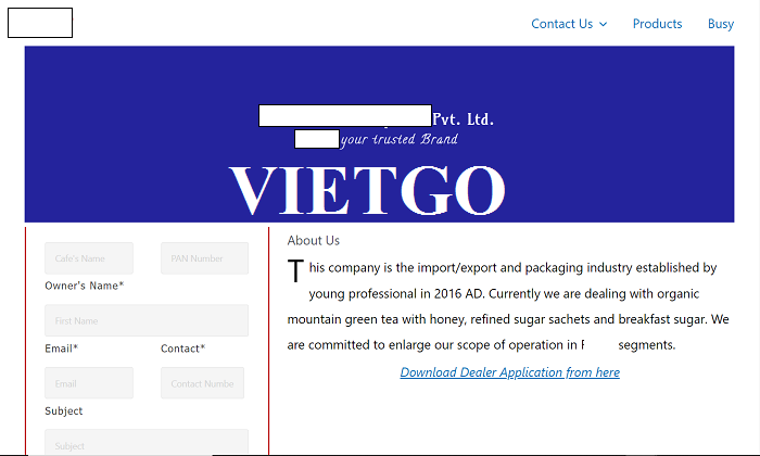 Nhận thấy tiềm năng to lớn từ thị trường nhóm ngành hàng tiêu dùng nhanh trong nước cùng với nhiều kinh nghiệm kinh doanh quý giá tích lũy sau đó, chúng tôi đã bắt đầu ngay vào nghiên cứu thị trường đầy màu mỡ này. Một thời gian không lâu ngay sau khi thành lập, ██████████ đã nổi lên nhanh chóng và dẫn đầu trong việc cung cấp những sản phẩm như trà xanh hữu cơ, mật ong, đường tinh luyện, hạt cà phê xanh v.v. Không những thế chúng tôi cũng sở hữu các nhà máy thực hiện gia công, đóng gói các sản phẩm bao bì được làm từ giấy và nhiều loại vật liệu khác, phục vụ trong nhu cầu sử dụng hàng ngày tại các khách sạn, nhà hàng trên toàn quốc cũng như xuất khẩu”.