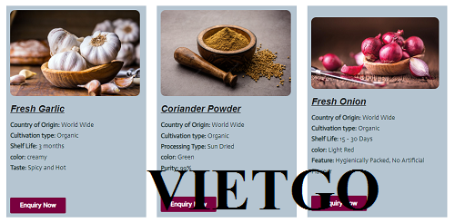 Trong cuộc trò chuyện cùng VIETGO, vị khách hàng chia sẻ: “Công ty chúng tôi là nhà xuất nhập khẩu và phân phối các loại rau củ tươi và gia vị chất lượng cao, tập khách hàng chính của chúng tôi hầu hết là các cửa hàng bán lẻ, công ty dịch vụ ăn uống, trường học, nhà hàng, chợ nông sản, v.v. Chúng tôi không có một thị trường nhập khẩu xác định, miễn là sản phẩm của nhà cung cấp của các bạn phù hợp cùng giá thành phải chăng, chúng ta hoàn toàn có thể trở thành một đối tác trong dài hạn. Sau đơn hàng lần này, chúng tôi sẽ tiếp tục cân nhắc gia tăng số lượng và tần suất nhập khẩu cho mỗi đơn hàng bởi nhu cầu người tiêu dùng tại đây luôn rất lớn.