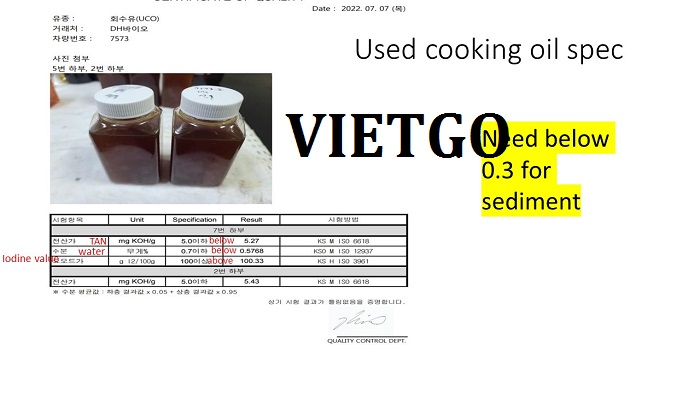 Hiện tôi đang có nhu cầu nhập khẩu 1.000 tấn dầu ăn đã qua sử dụng mỗi tháng bao gồm các loại dầu ăn dầu cọ, dầu hướng dương, dầu đậu nành đến cảng Incheon hoặc Busan với yêu cầu dầu ăn cần đạt được các thông số mà tôi đưa ra. Thêm vào đó tôi muốn nhận được 2 lít dầu ăn mỗi loại để kiểm tra chất lượng sản phẩm. Ngoài ra, tôi muốn được tư vấn thêm về các phương thức đóng gói để tiện cho viẹc vận chuyển. Tôi muốn được báo giá cụ thể bao gồm cả chi phí vận chuyển đến cảng nói trên và được tư vấn nhiều hơn về sản phẩm.