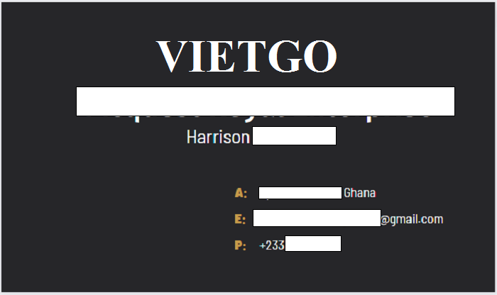 ██████████ có trụ sở chính đặt tại Ghana. ██████████ là công ty thương mại đáng tin cậy trong lĩnh vực sản xuất, xuất nhập khẩu các loại thực phẩm thô, phục vụ cho quy trình chế biến, sản xuất sản phẩm phục vụ cho nhu cầu tiêu dùng hàng ngày, bên cạnh đó, công ty còn kinh doanh các sản phẩm đá quý, kim cương. Công ty làm việc với các công ty sản xuất trên toàn thế giới, ngoài ra, công ty cũng tham gia trực tiếp vào quá trình sản xuất để đảm bảo chất lượng sản phẩm, đủ điều kiện để xuất khẩu đi khắp các nước trên toàn thế giới.