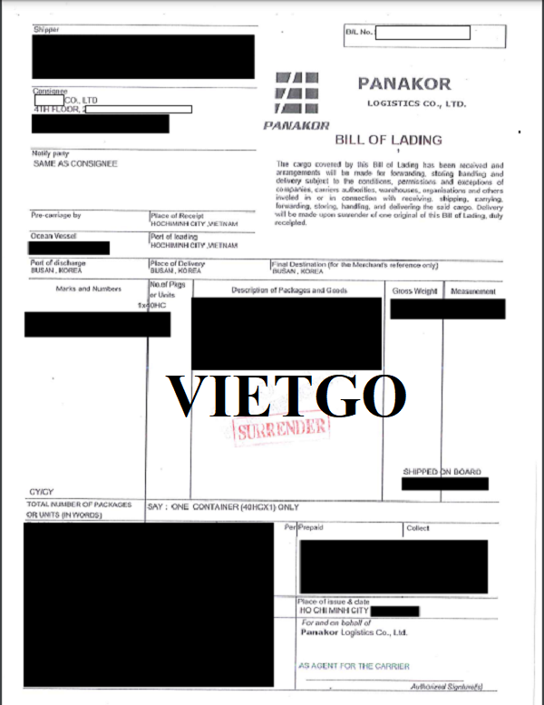 Hình ảnh Vận đơn đường biển do vị khách hàng cung cấp