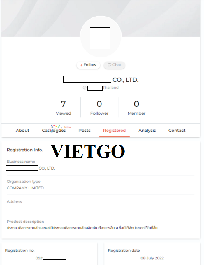 Thông tin đăng ký kinh doanh của công ty vị khách hàng