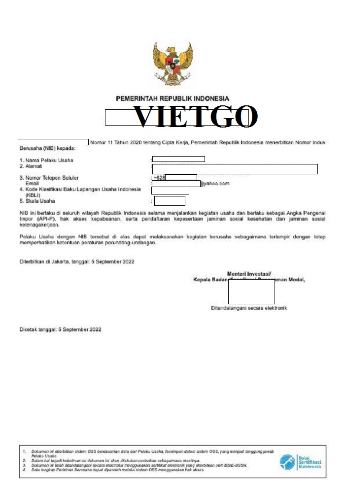 Hình ảnh đăng ký kinh doanh của vị khách hàng