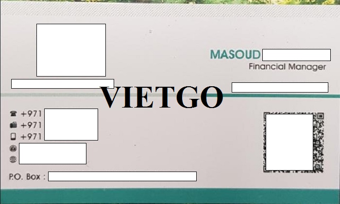 Qua quá trình làm việc, VIETGO đánh giá rằng đây là một vị khách hàng thân thiện và nhiệt tình. Ông Masoud luôn giữ thái độ vui vẻ và tạo không khí thoải mái cho các đối tác. Vị khách hàng cũng dành nhiều thời gian trao đổi về đơn hàng và bày tỏ thiện chí hợp tác với các nhà cung cấp do VIETGO giới thiệu. Vì vậy, Quý nhà cung cấp quan tâm tới đơn hàng và có mong muốn hợp tác với ông Masoud vui lòng sớm liên lạc với ông qua thông tin dưới đây: